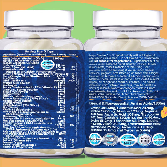 Marine Collagen Type1&3 1800mg, Biotin 10000mcg...