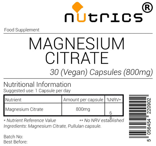 Nutrics® 800mg Magnesium Citrate - One A Day St...