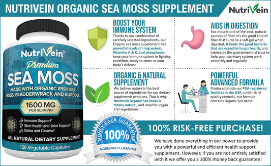 Nutrivein Organic Sea Moss 1600mg Plus Bladderw...