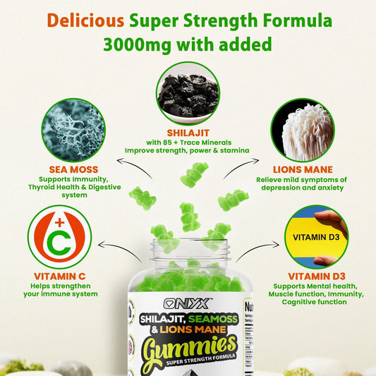 ONYX NUTRA Shilajit, Sea Moss & Lion's Mane Gum...