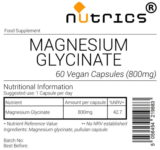 Nutrics® 800mg Magnesium GLYCINATE 100% Pure Hi...