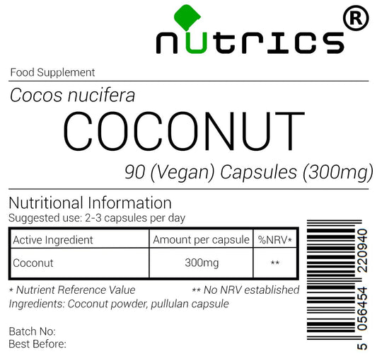 Nutrics® Coconut 300mg 100% Pure x 90 V Capsule...