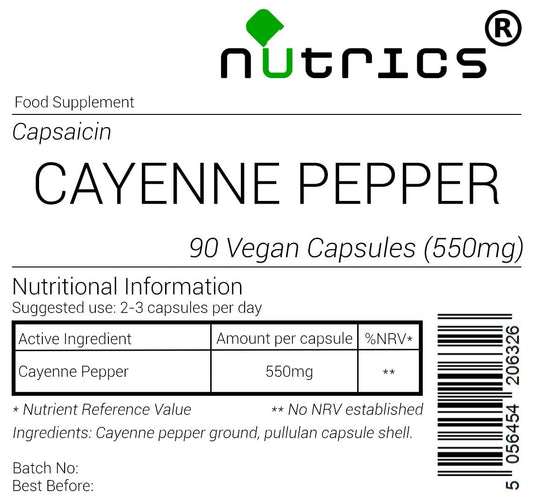 Nutrics® Cayenne Pepper 550mg 90 V Capsules (1 ...