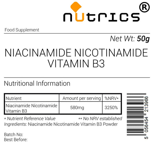 Nutrics® Vitamin B3 NIACIN NICOTINIC Acid 50g 1...