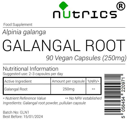 Nutrics® GALANGAL ROOT 250mg 100% Pure - 90 Veg...