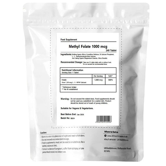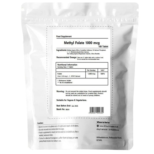 UKHealthHouse Methyl Folate 1000mcg - Tablets a...