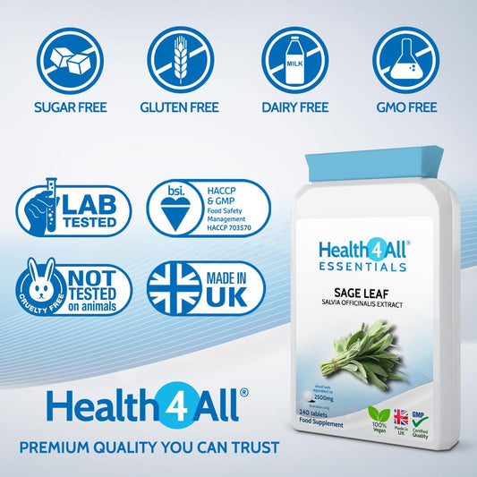 Health4All Sage Leaf 2500mg 240 Tablets (8 Mont...