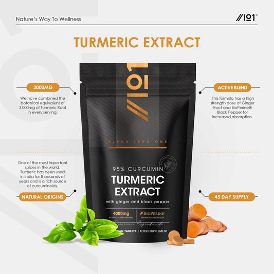 ALPHA01 Turmeric Curcumin 95 Tablets 3000mg wit...