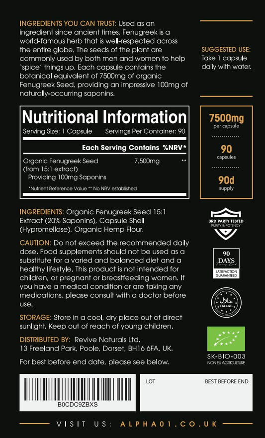 Organic Fenugreek Extract 7500mg - 90 Capsules ...