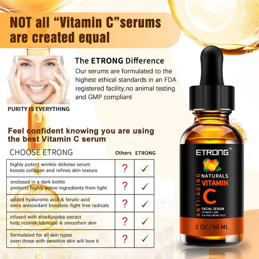 ETRONG 2oz Vitamin C Serum Face with Hyaluronic...
