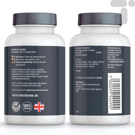 Transforme Vitamin D3 4000 IU in Olive Oil, 365...