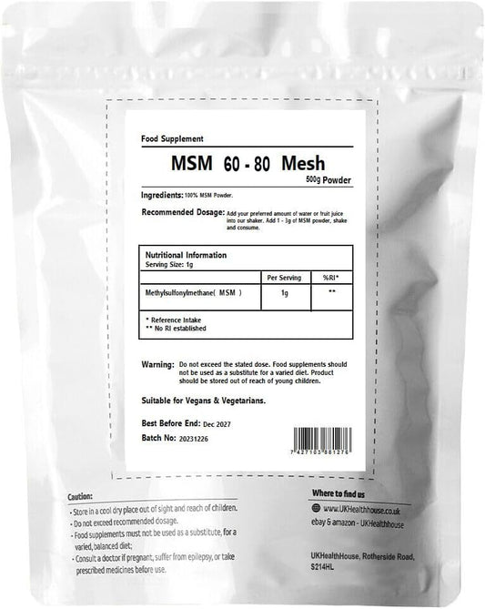 UKHealthHouse 100% Pure MSM Powder x 500g - Met...