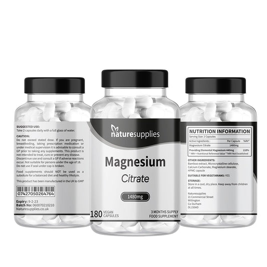 Magnesium Citrate Capsules 1480mg, 180 Per Bott...