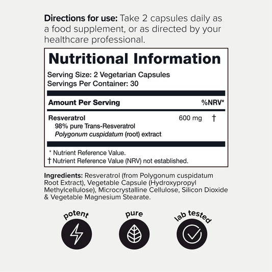 Ultra High Purity Resveratrol Capsules - 98% Tr...