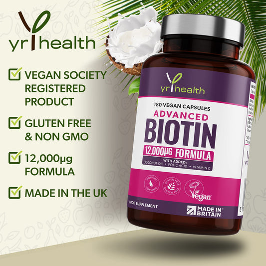 Biotin Hair Growth Supplement 12,000mcg, 180 Ve...
