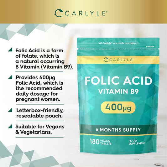 Folic Acid Tablets 400ug | 180 Count (6 Months ...