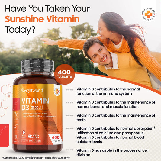 Vitamin D3 2000 IU - 400 Tablets (Over A Year S...