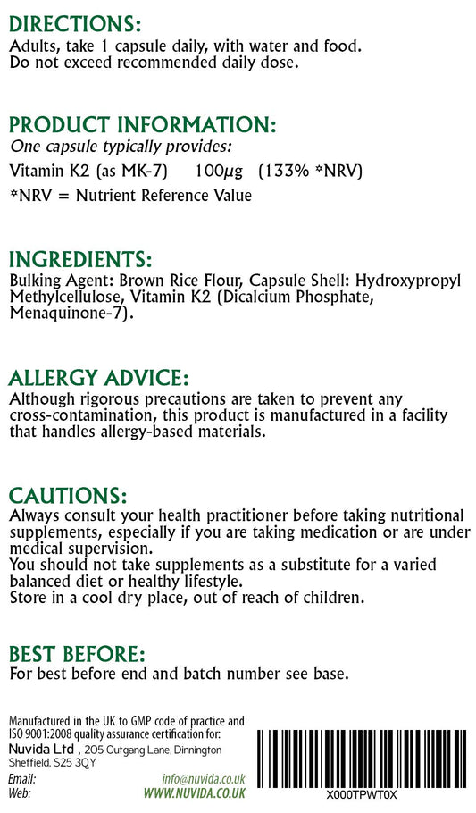 NUVIDA NATURAL HEALTH Vitamin K2 MK-7 Capsules ...