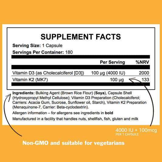 Vitamin D3 4000iu & K2 100ug (MK7) Vitamin D3 K...