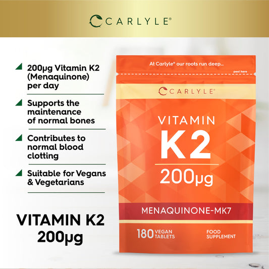 Vitamin K2 MK7 200ug | 180 Vegan Tablets | Mena...