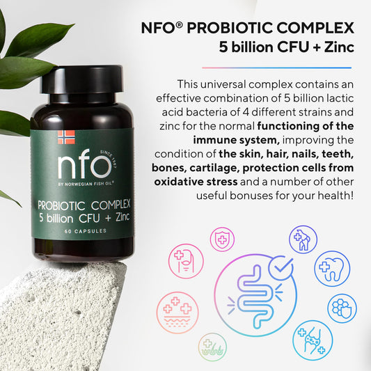NFO Probiotic Complex 5 billion CFU + Zinc [60 ...