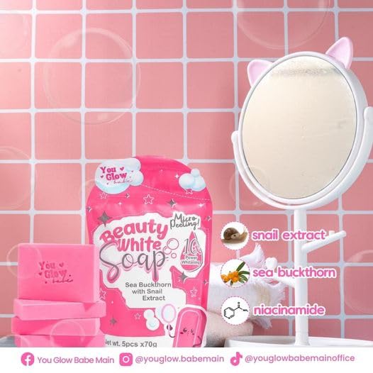 Indulge in the luxurious Beauty White Soap from You Glow, a delightful fusion of Sea Buckthorn and Snail Extract. This set of 5 bars, each weighing 70g, promises a delightful pampering experience. The soap's gentle formula harnesses the power of natural ingredients to nourish and rejuvenate your skin, leaving it feeling silky smooth and radiantly glowing. With its delicate fragrance and lush lather, this soap offers a moment of indulgence in your daily routine. Embrace the magic of nature's bounty and treat your skin to the ultimate beauty ritual.More Info