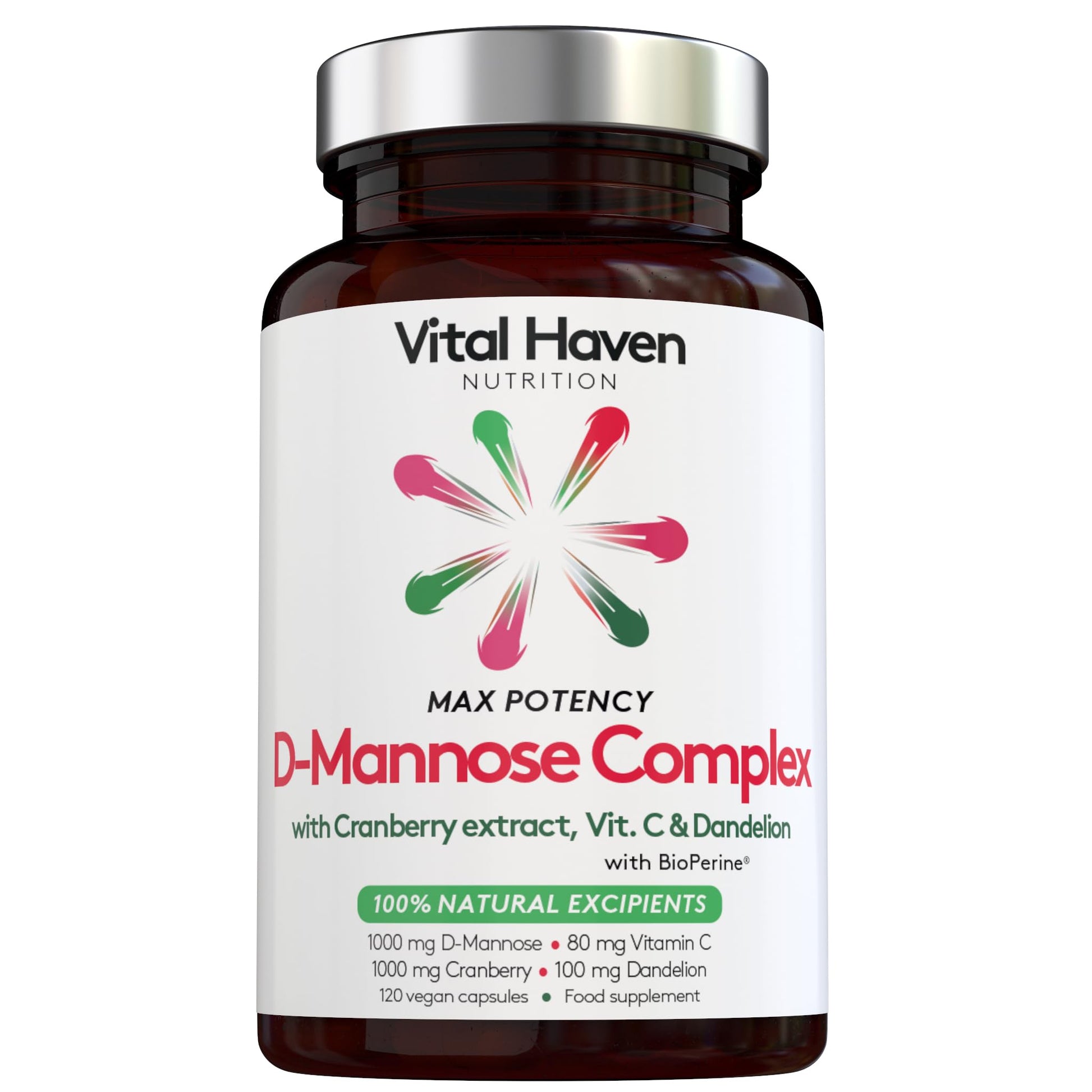 - 100% Natural 5-in-1 Urinary Tract Support - High Strength D-Mannose, Cranberry Extract, Dandelion Roots, Vitamin C and Bioperine - UTI Prevention & Urinary Cleansing - 120 Caps - Made in The UK by Vital Haven