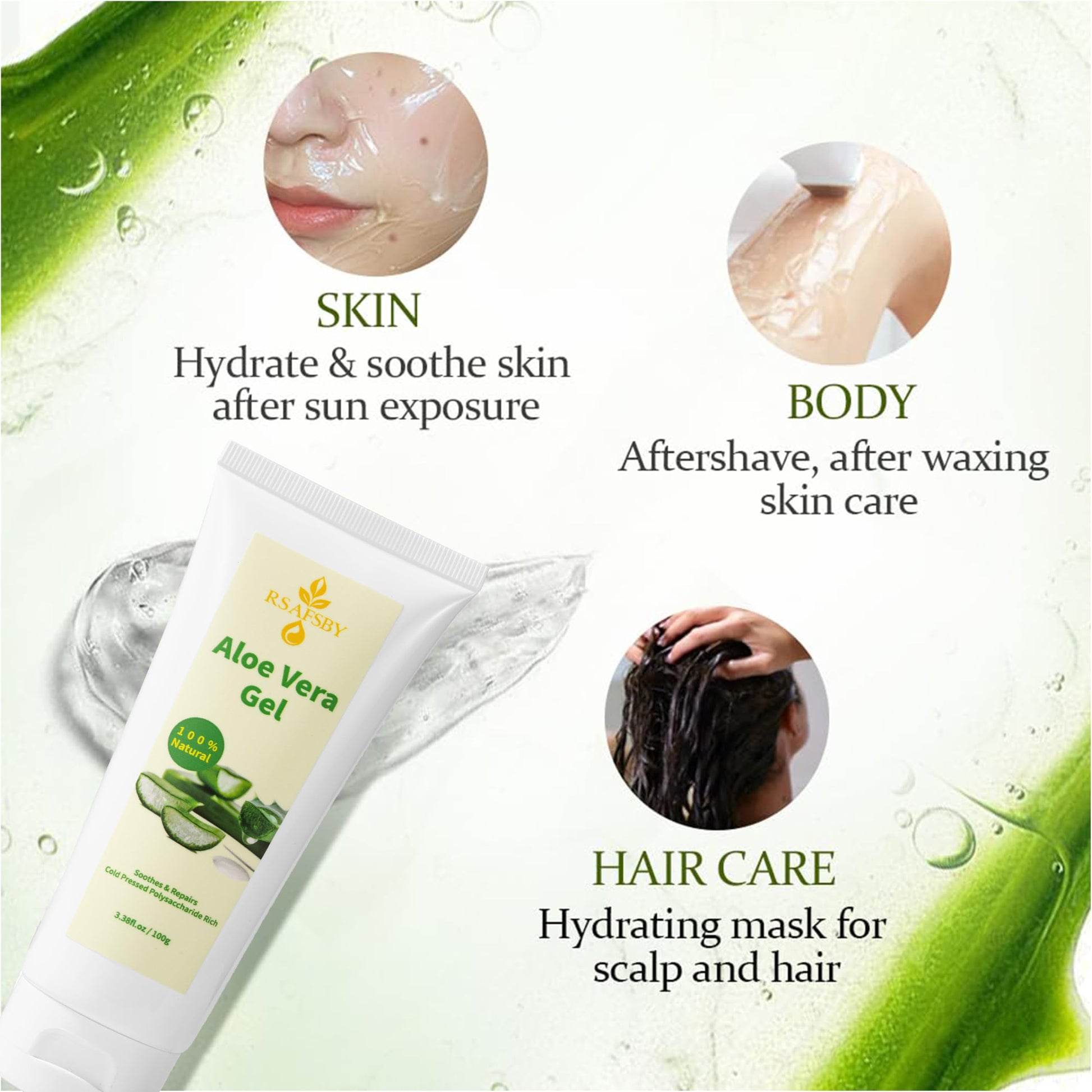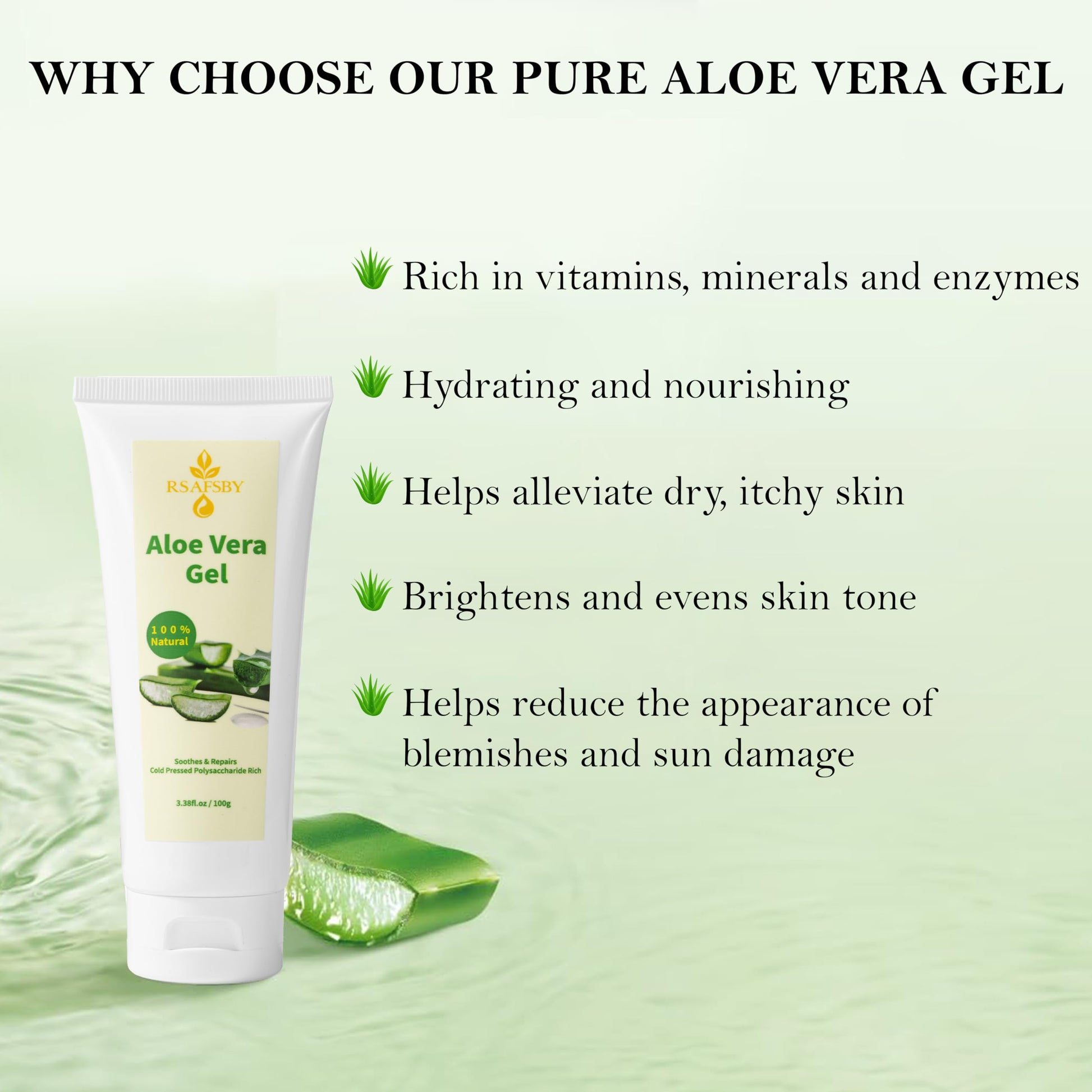 Experience the soothing power of RSAFSBY's 100% Natural Aloe Vera Gel, a versatile 100g skincare solution perfect for face, body, and hair care. This cold-pressed gel harnesses the natural healing properties of aloe vera, delivering deep hydration and relief for various skin concerns. Whether you're dealing with dry skin, sunburn, blemishes, or general skin irritation, this gentle yet effective formula works to calm and repair your skin. The polysaccharide-rich composition ensures maximum moisturising benefits while maintaining your skin's natural balance. Suitable for all skin types, this non-sticky gel absorbs quickly into your skin, leaving it feeling refreshed and rejuvenated. The convenient 100g tube makes it perfect for daily use and travel. Incorporate this natural wonder into your skincare routine to maintain healthy, hydrated, and comfortable skin throughout the day.More Info