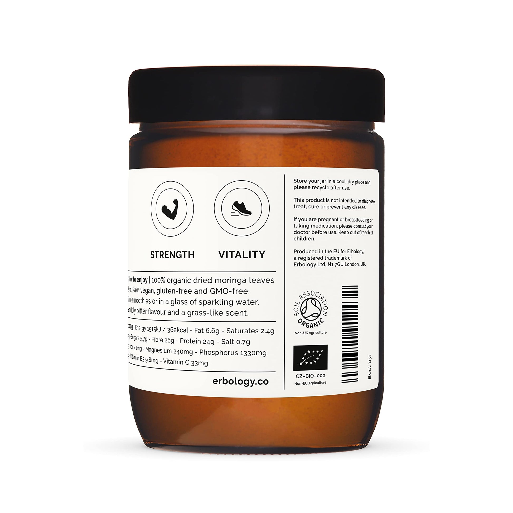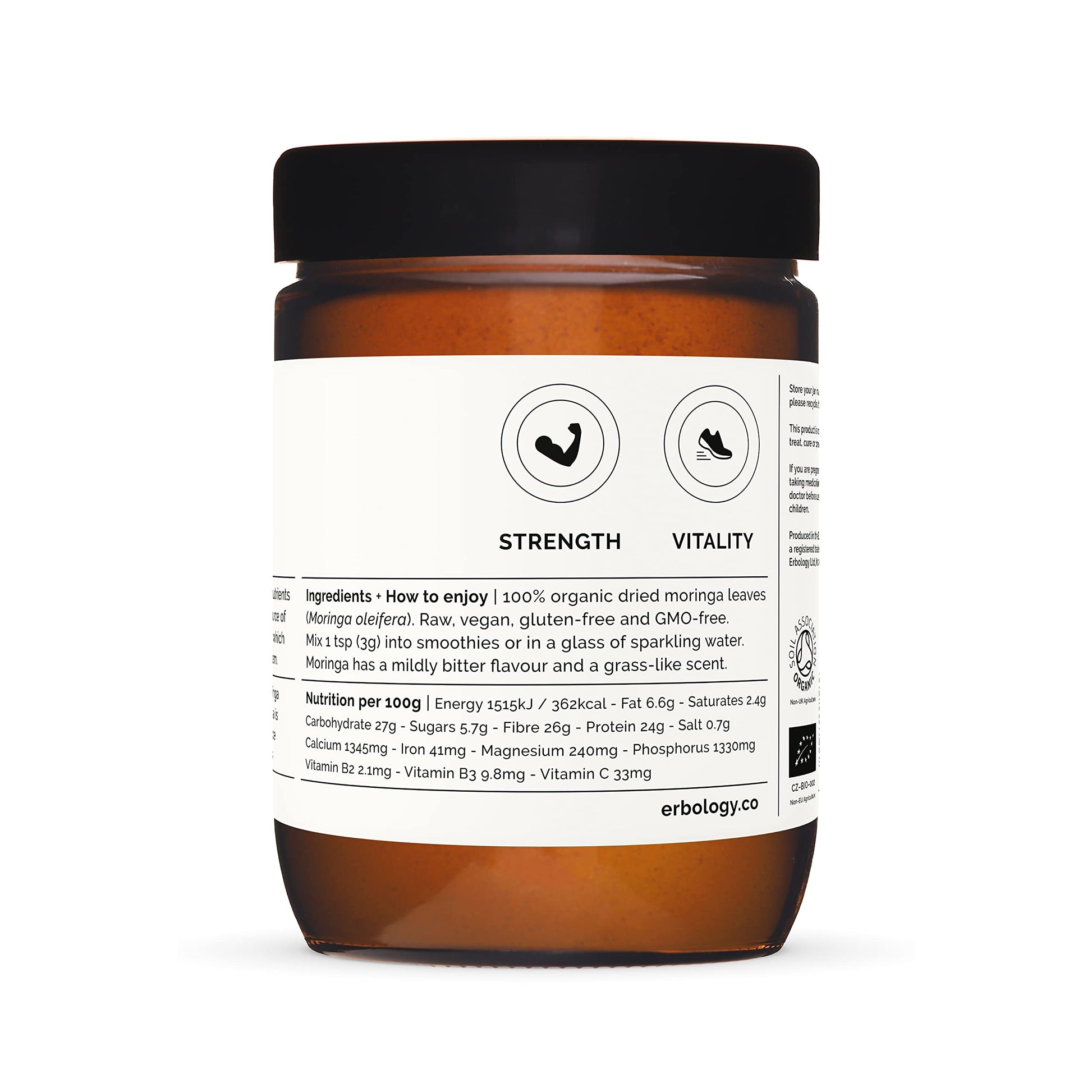 100% Organic Moringa Pure Leaf Powder 180g - Immunity - Straight from Farm - Raw, Vegan and Gluten-Free - Non-GMO - No Additives or Preservatives - Recyclable Glass Jar