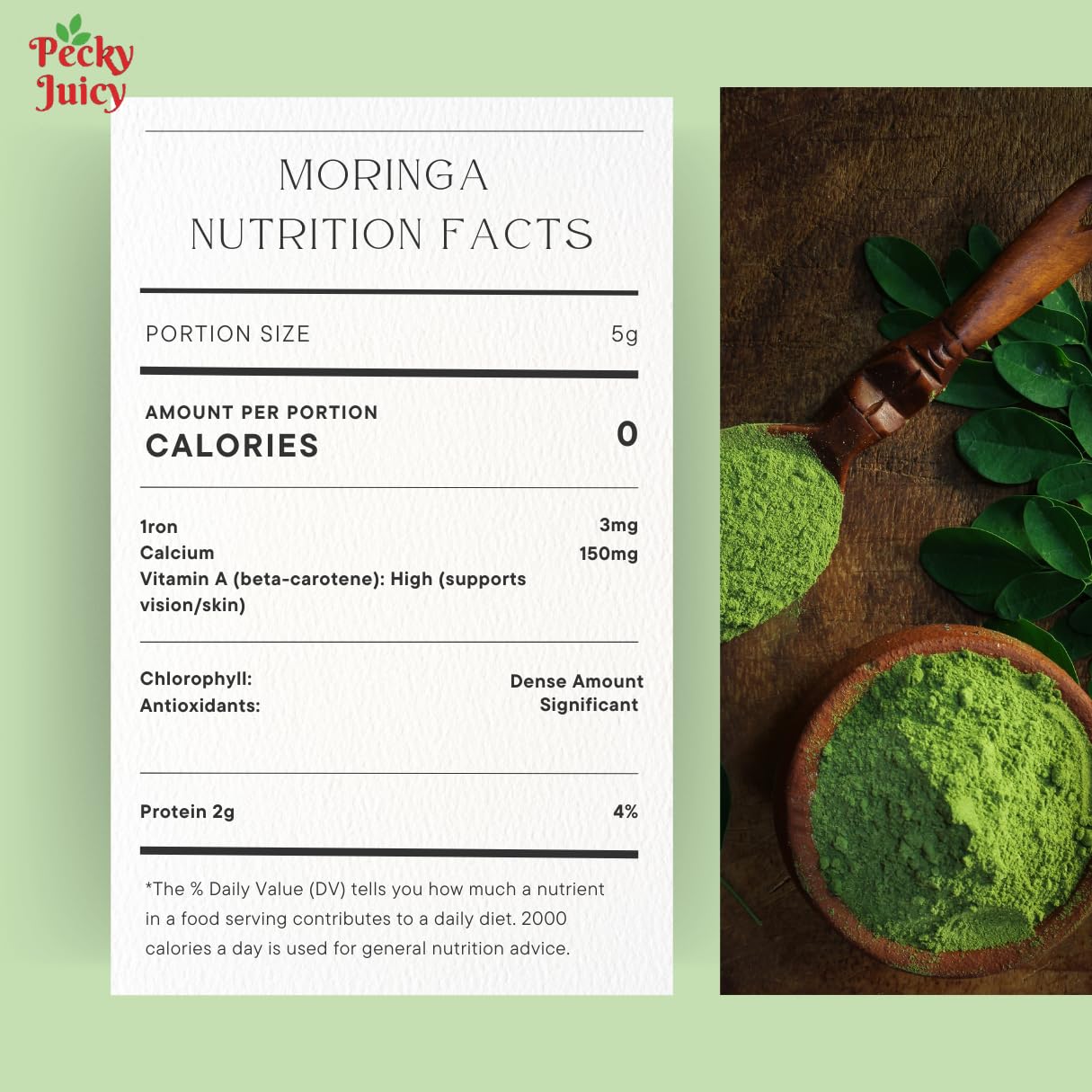 100% Pure Moringa Powder 180g with FREE 5g Scoop by Pecky Juicy – Pure Botanical Powder for DIY Beauty, Wellness, Hair Masks & Herbal Use