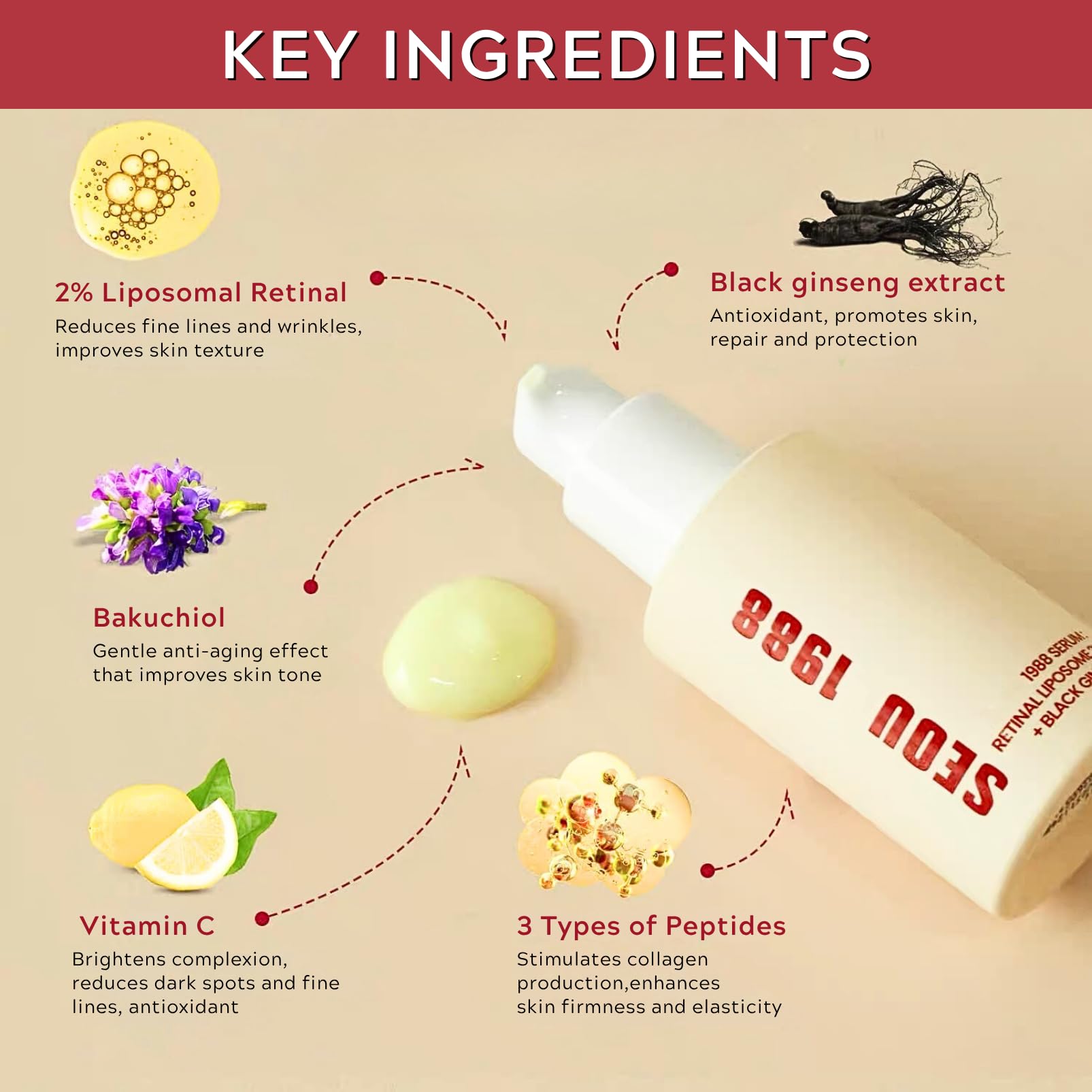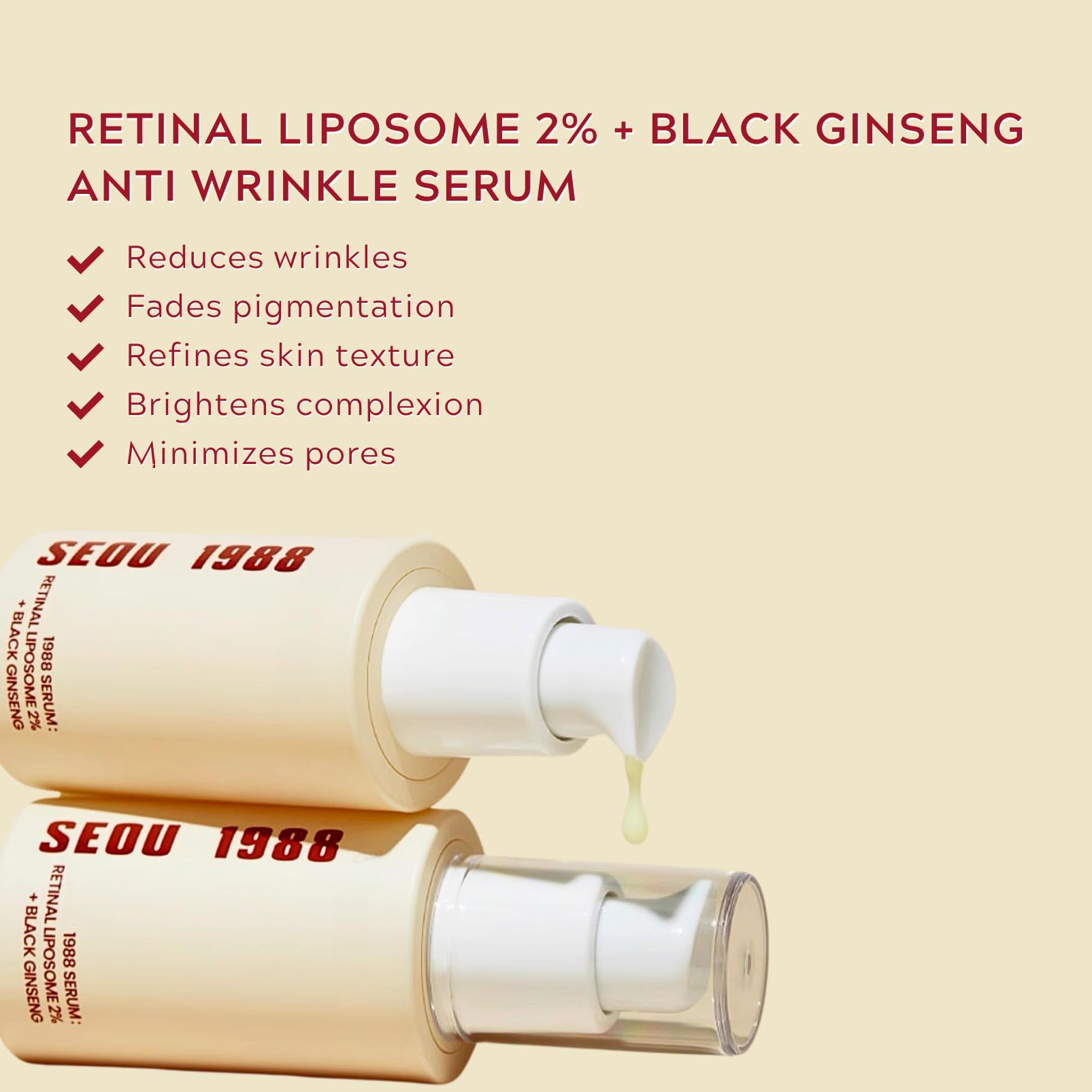 Package Included: 30ML Korean 1988 Serum : Retinal Liposome 2% + Black Ginseng