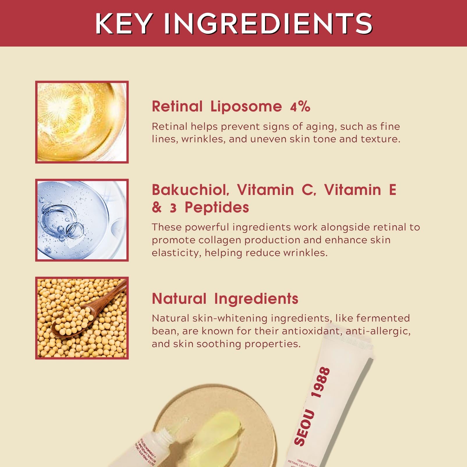 30ML 1988 Eye Cream Anti Aging: Retinal Liposome 4% + Fermented Bean