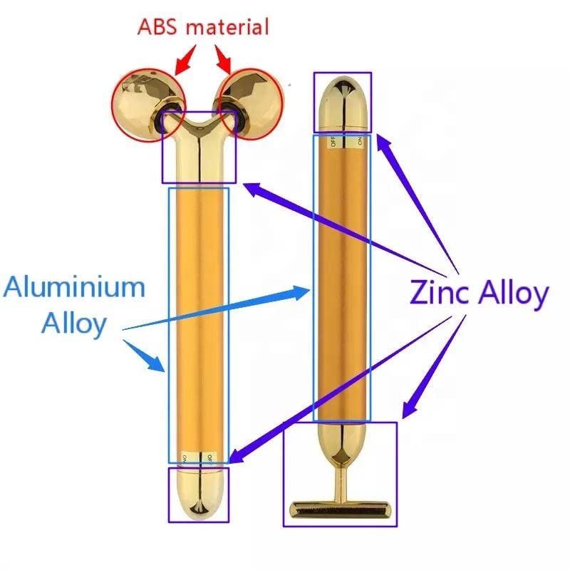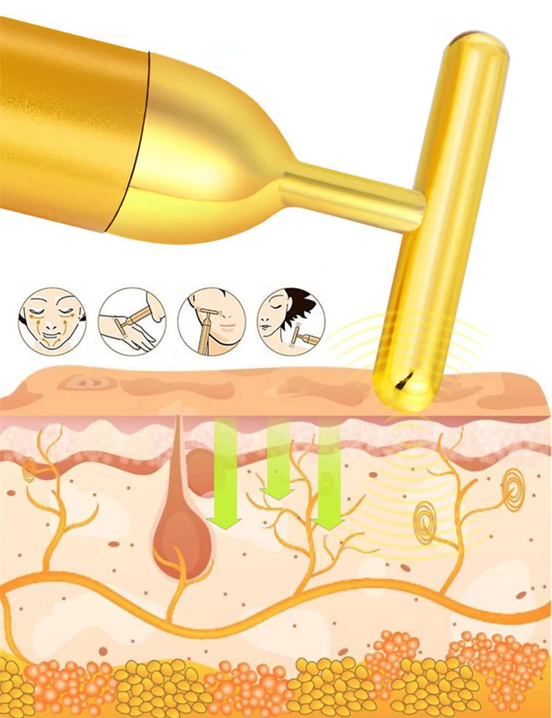 X2 Handles - Each tool with its own handle. No Change and No Swap. BEST and Convinient to use with no hussle to change handle. Package Includes; X2 Handles for each tool 1 3D 360 degrees V-Shape Vibrating tool 1 T- Shape Vibrating tool 1 Black cloth carriage 1 Manual 1 Custom magnetic Hard case box. 2-in 1 face magical massager kit, there are 2 types of beauty bar - 3D roller face massager, the other is "T" shape electric energy beauty bar, enjoy high frequency vibration massage time. Double Drainage 3D Roller - Diamond-grade cut with small diamond shape and unique 3D "V" type design to fitswell to every corner of your face, with double drainage roller, simulate massage master complex kneading techniques which can make you enjoy comfort experience like from the SPA class massage, with roller balls perfect for use of essential Oils, perfumes oils,healing. Innovative T- Shape Head Design - Compact and sleek, more optimal contact with your skin, activate skin cells metabolism, restore skin firmness and elasticity, preventing the aging, enhancing immunity High Frequency Vibration - Vibration massage therapy can keep moist and elastic through vibration with stable electric power driven. Requires one AA batteries. Vibration frequency: About 6,000 times/minute Safe Contact with Your Skin Vibration Massage therapy, an extremely hit beauty technology and has been a sensation in skincare tools. Activate skin to keep moist and elastic through vibration (Massage). Help in skin blood circulation. Massages Another Parts on Your Body Chin Massage - Keep V chin forever Neck Massage - Avoid neck ache Waist Massage - Keep S figure Buttocks Massage - Keep S figure Arms Massage - Keep arms smooth Legs Massage - Keep legs smooth ✿ What's the benefits of this massager? Let's fight against with wrinkle, dark circles, edema-Using our 24K Golden Beauty Bar, you will finally reach the full potential of your skincare with radiant beauty.More Info