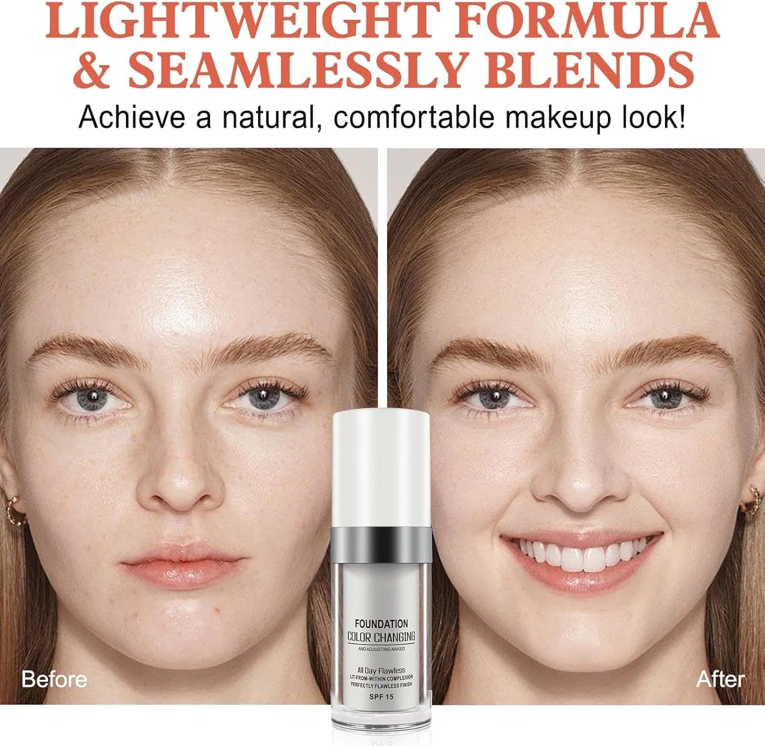 2 Pack Color Changing Liquid Foundation for Aging Skin - Long-lasting Moisturizing Concealer for Nude Base - Smoothes Skin Tone and Masks Age Spots - 30ml*2