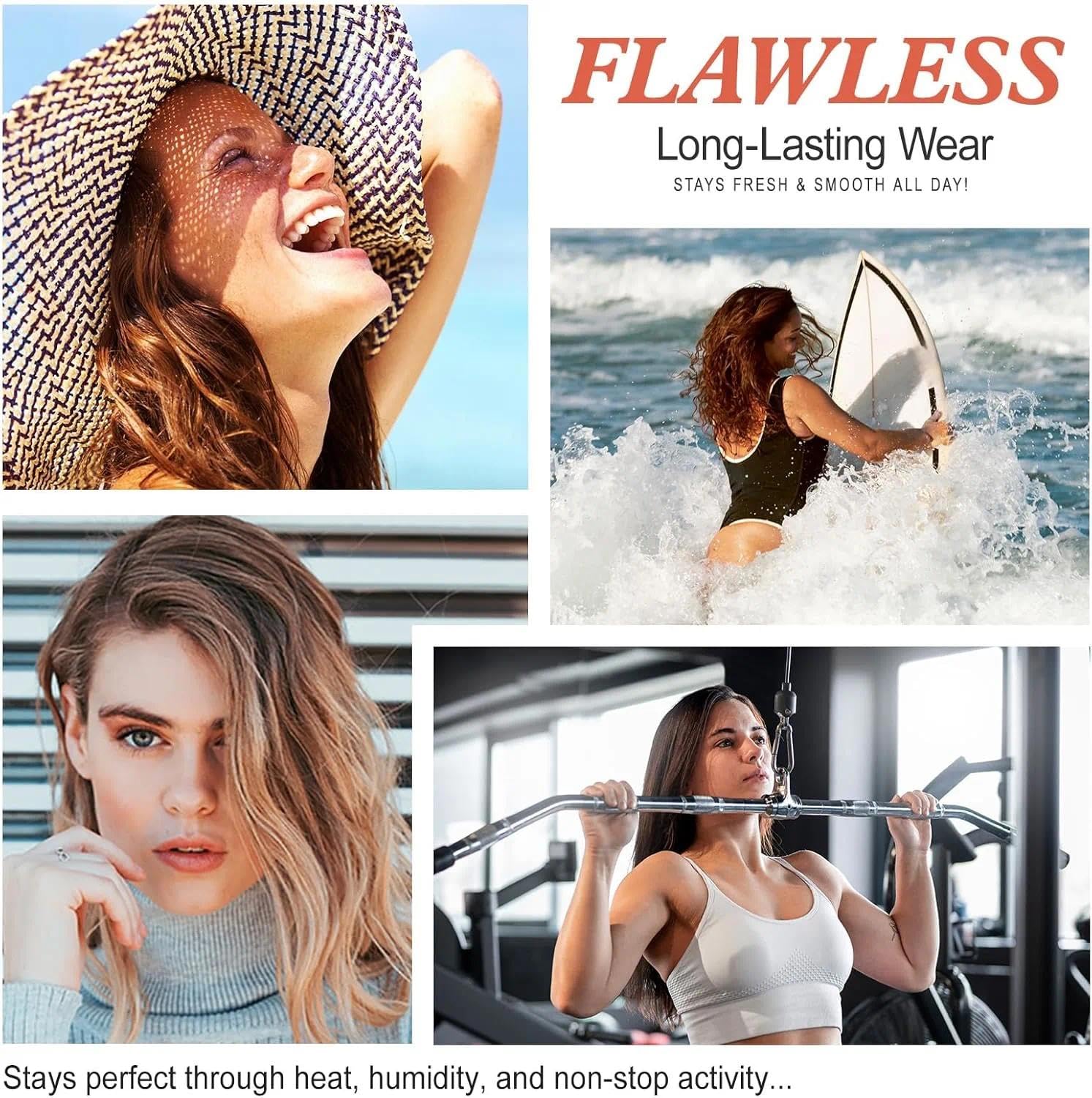 2. Use a foundation brush or sponge to apply and blend in gentle circular motions (Build up small amounts according to the degree of skin imperfections).