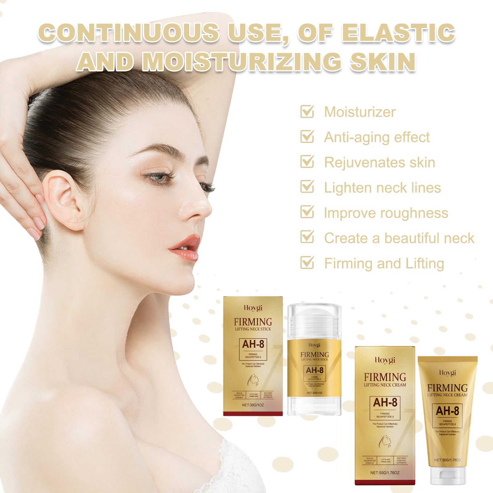 2 PCS AH-8 Firming Neck Cream and Care Stick, Firming Lifting Neck Cream with Hexapeptide, Tighten And Lift, Reduce Fine Lines and Double Chin, Lift Sagging Skin (30g + 50g)