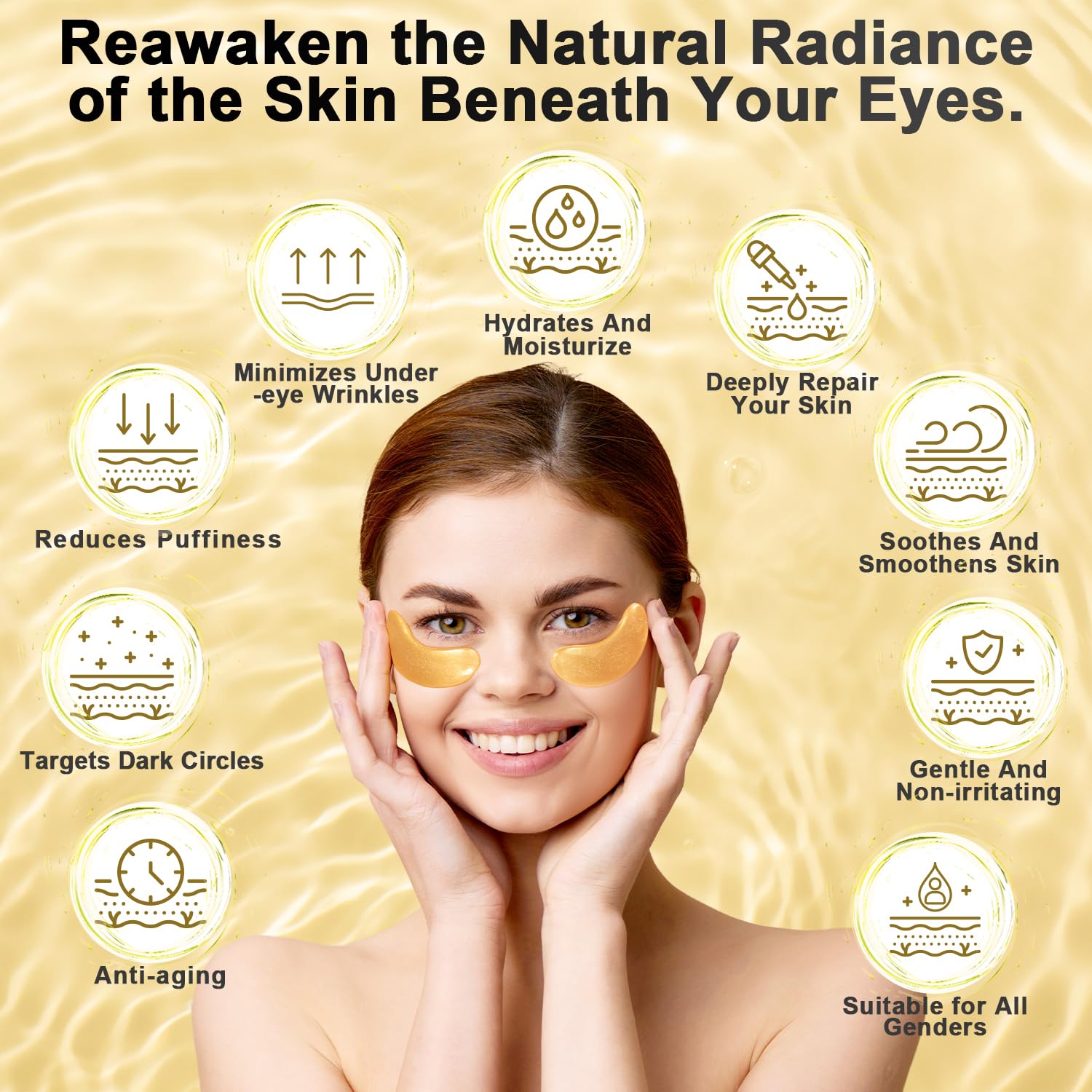 24K Gold Under Eye Patches, 24 Pairs Gel Eye Pads Skincare, Collagen Hyaluronic Acid Eye Pads, Against Dark Circles, Self Care Mask For Eye Bags, Puffy Eyes, Wrinkle Removal, Dermatologically Tested