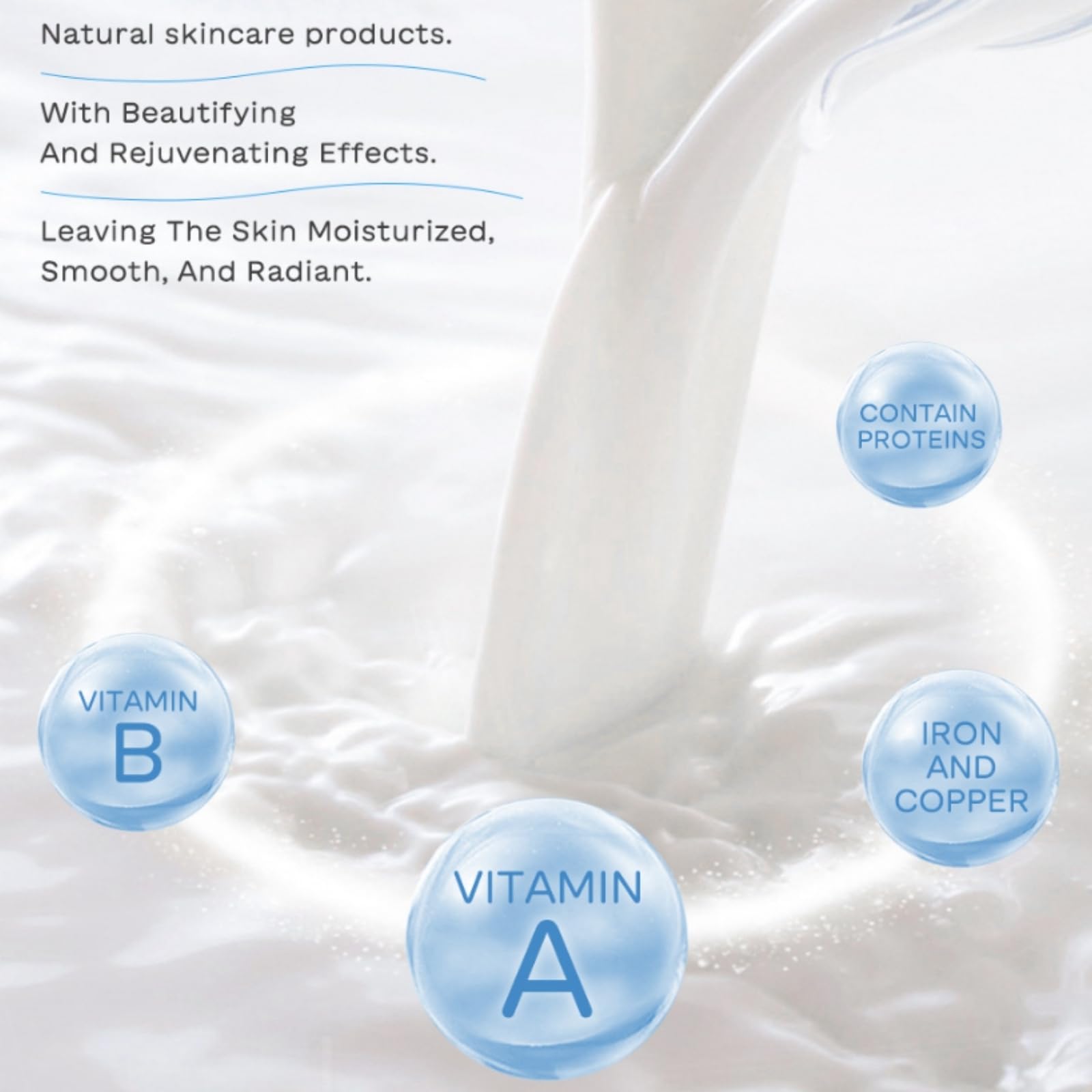 Milk Extract – Rich in vitamins and proteins, milk hydrates, soothes, and softens the skin, promoting a smooth and supple texture.