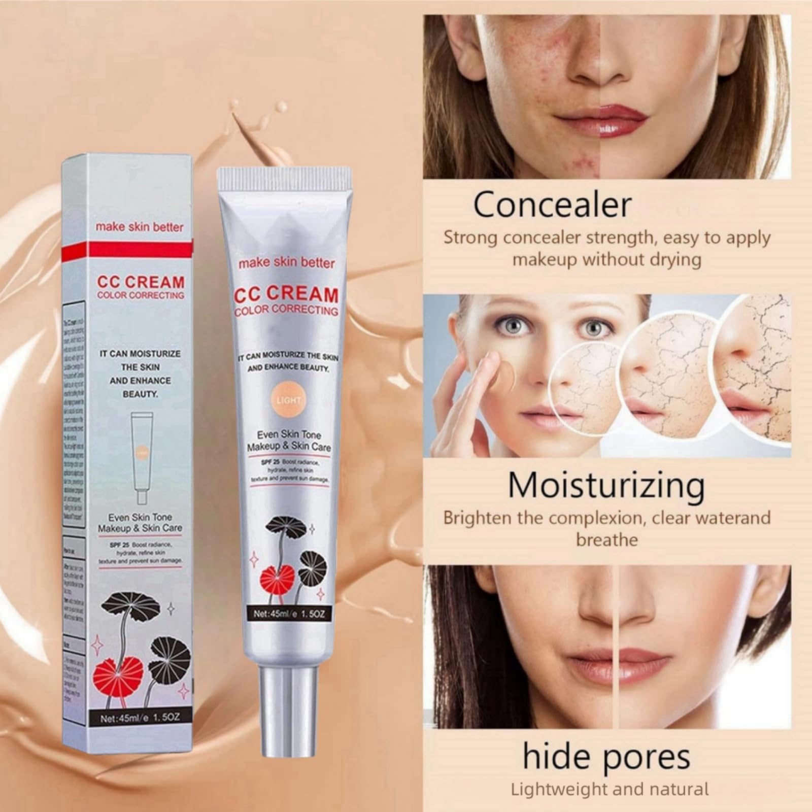 Feature1.Light and delicate texture, korean CC cream is skin-friendly and breathable, comfortable skin feel.