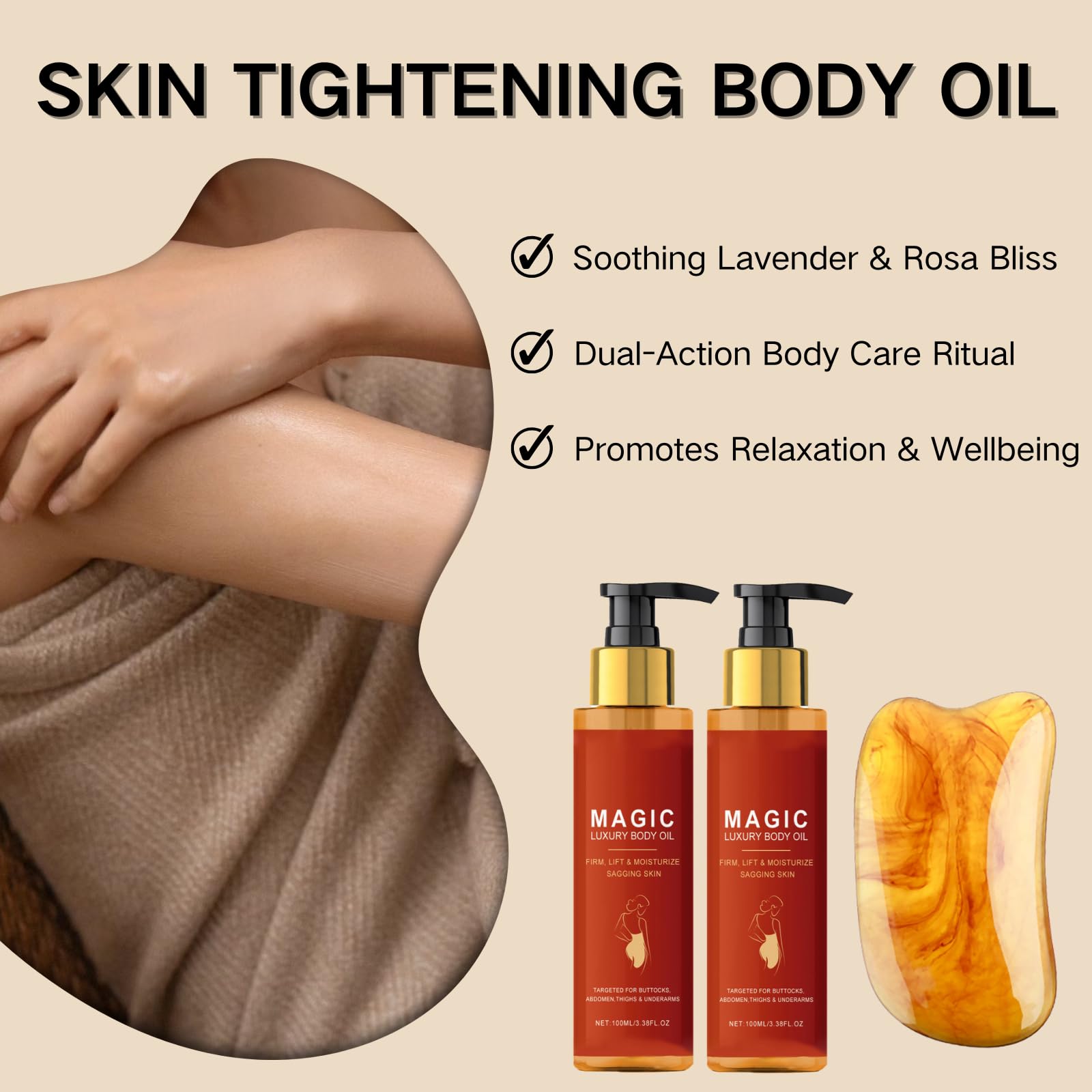 2pcs Body Oil , 1pc Gua Sha Tool , 200ml