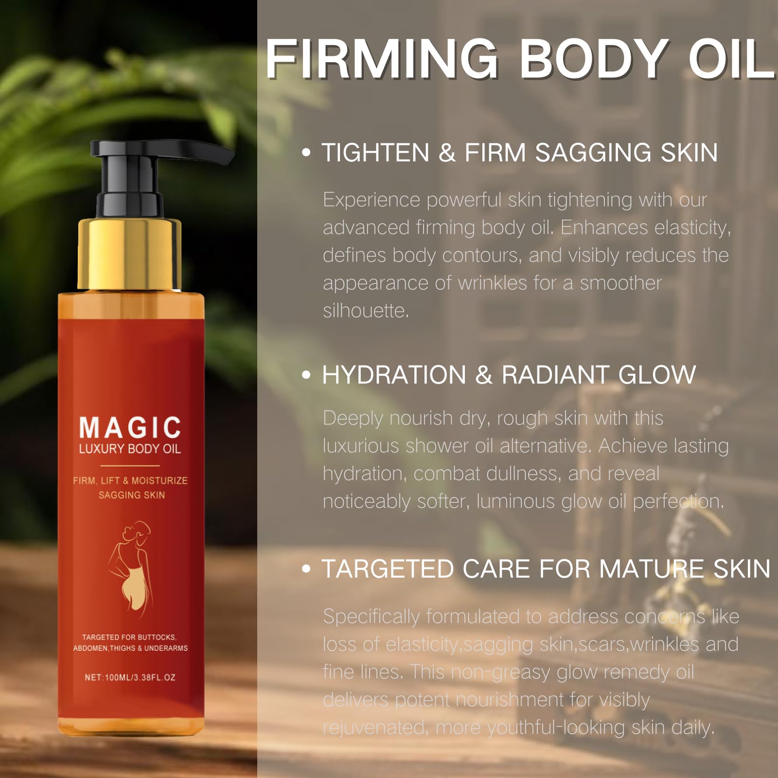✅ Visibly Firms & Lifts: Experience a tangible improvement in skin elasticity and tightness, the vanilla body oil helping to define your natural contours.