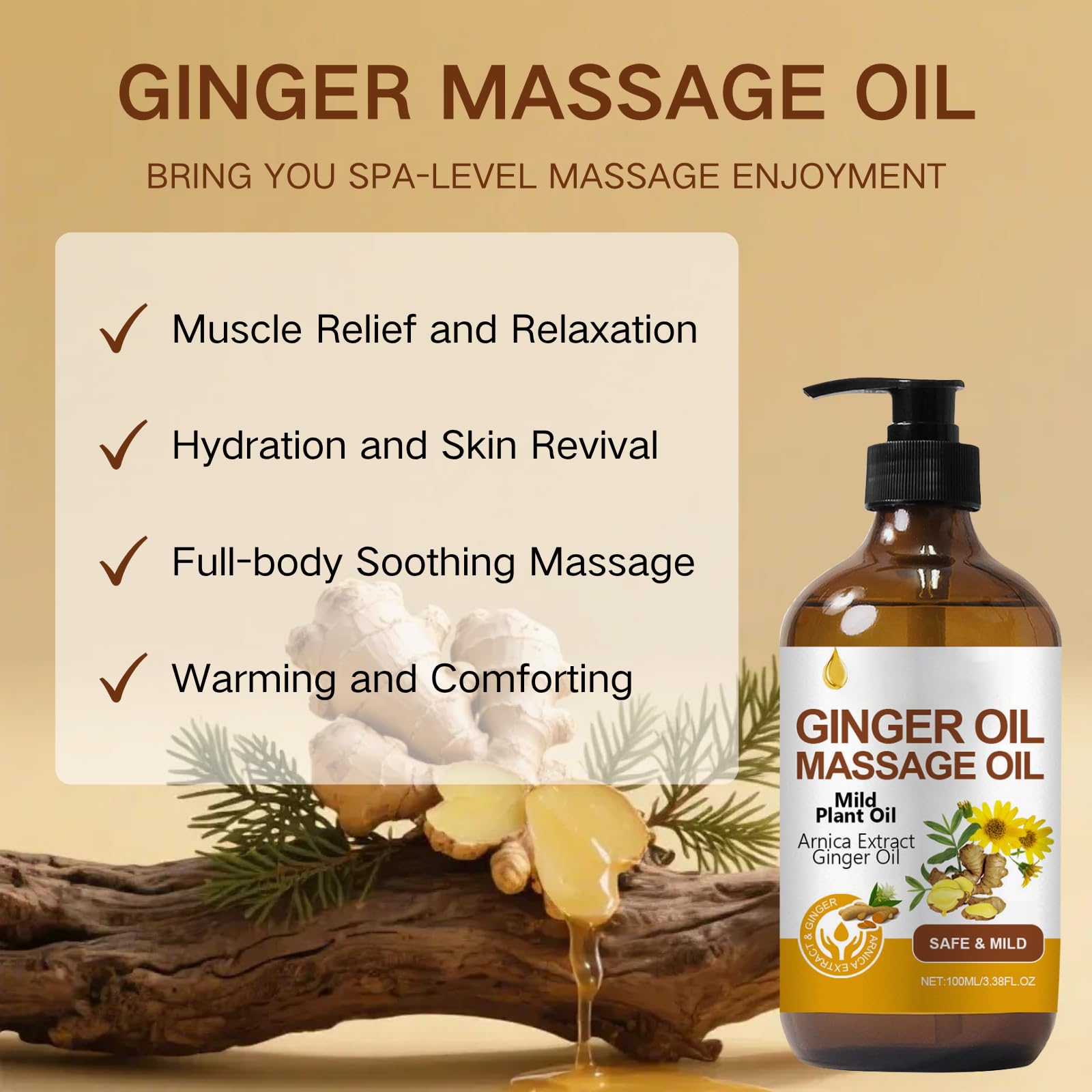 Muscle Relief Massage Oil with Ginger & Arnica - Warming Body Oil for Deep Relaxation, Tired Legs & Skin Hydration + Vitamin E