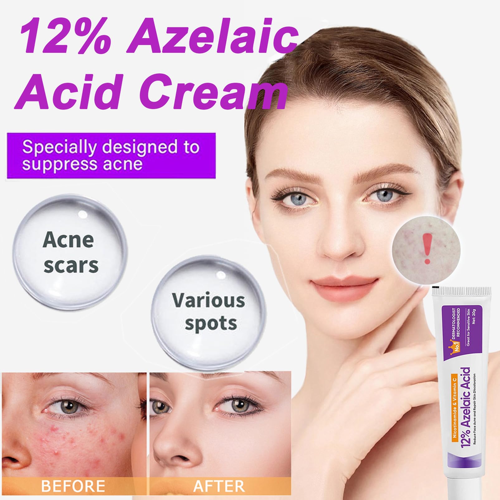 Face Skin Care Azelaic Acid 12% Serum Cream Multifunctional Brightening Formula 20g Uneven Tone Dullness Acne Improve Acne Marks Anti-oxidationEnjoy the Azelaic Acid 12% Cream to easily unclog pores, lighten pimples, brown spots & acne marks & nourish & firm skin!