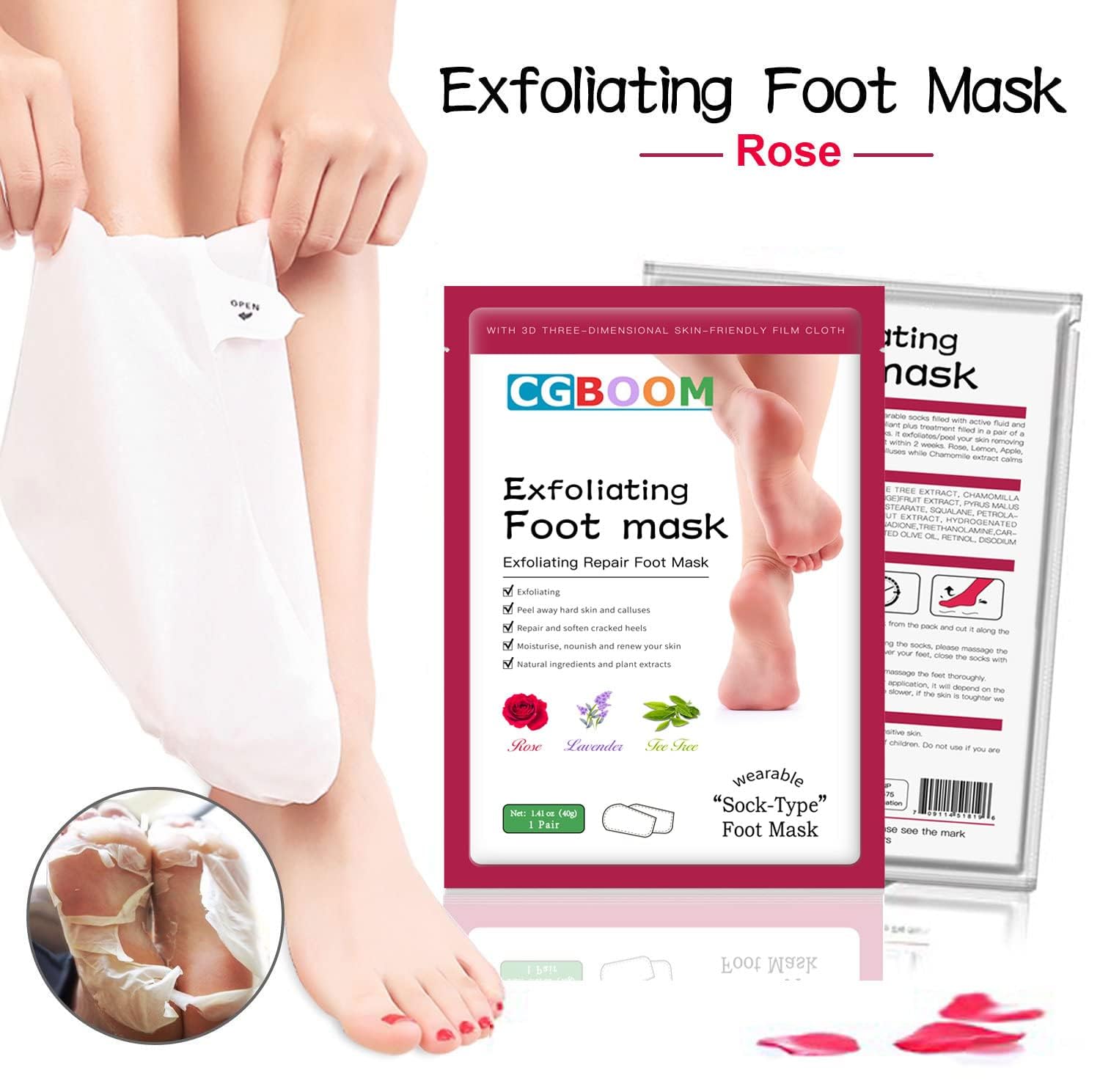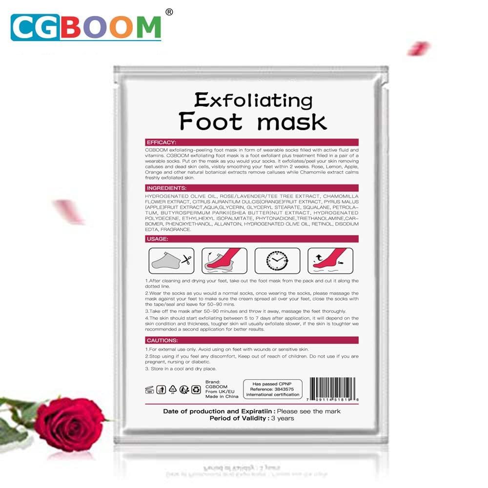 3 Pack Foot Peel Mask,Exfoliating Foot Socks Calluses Remover Dead Skin, Aloe Moisturizing Feet Peeling Mask for Dry Skin,Cracked Heels,Foot SPA Socks for Women and Men (Rose)