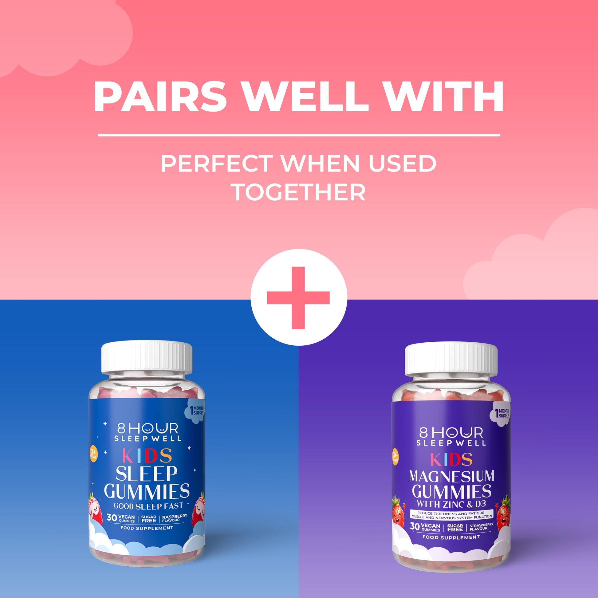 8 HOUR SLEEPWELL – 30 Sugar Free Kids Magnesium Gummies - Strawberry Flavour - Magnesium Citrate, Zinc & Vitamin D3 - Providing 113mg Elemental Magnesium for Kids 3+ - Calm Mind & Strong Bones - VeganMore Info