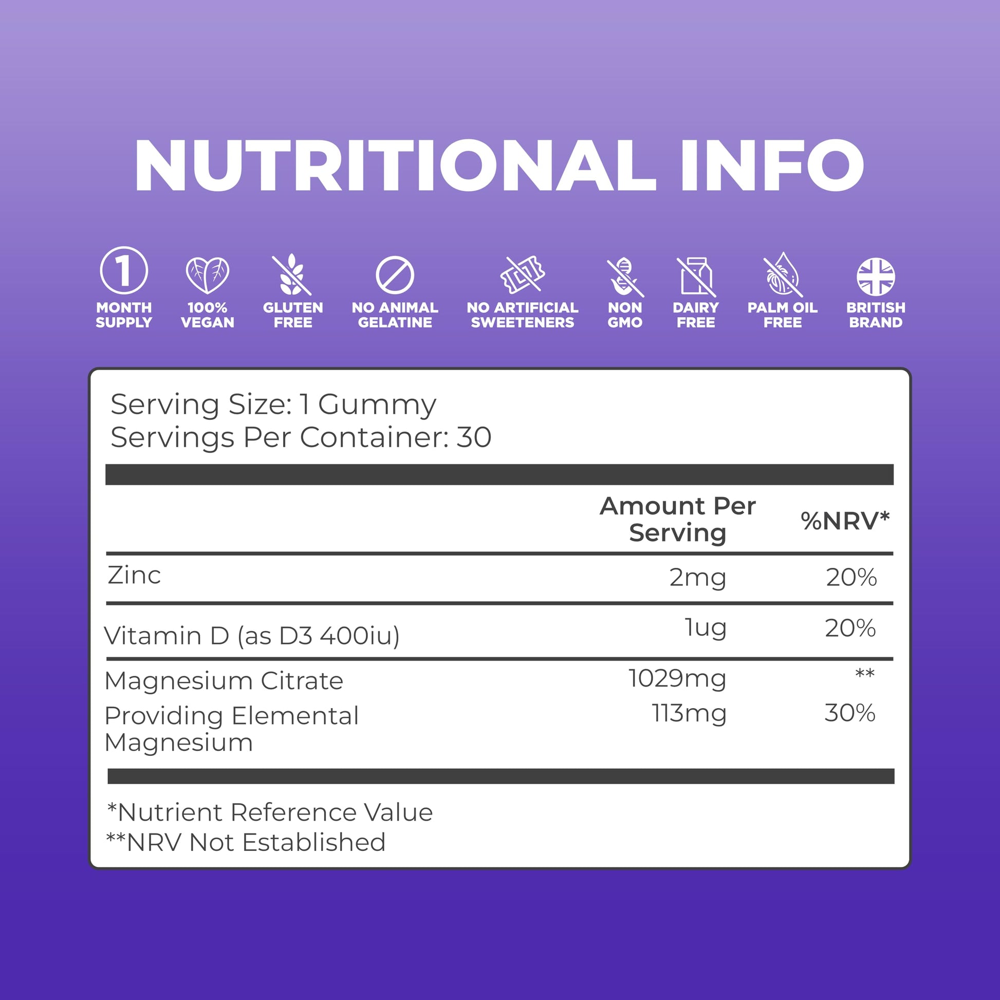 30 Chewable Sugar-Free Kids Magnesium Gummies - Strawberry Flavour - 1029mg Magnesium Citrate, Zinc & Vitamin D3 - Providing 113mg Elemental Magnesium for Kids 3+ - Calm Mind & Strong Bones - Vegan