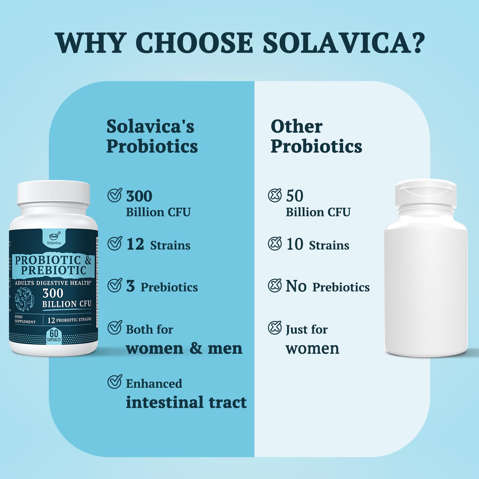 300 Billion CFU Probiotics for Digestive Gut & Immune Health, Advanced Strength Probiotics with 12 Diverse Strains + 3 Prebiotics for Women & Men (60 Count (Pack of 1))