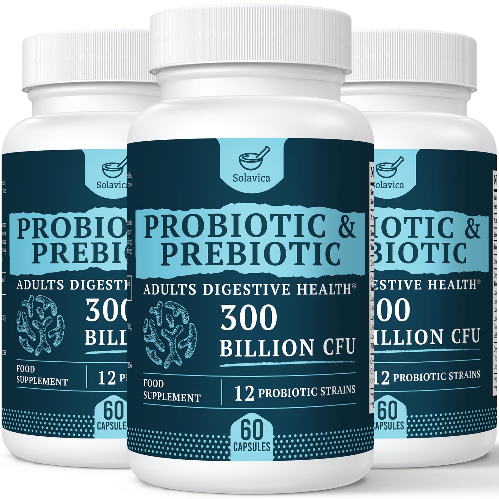 300 Billion CFU Probiotics for Digestive Gut & Immune Health, Advanced Strength Probiotics with 12 Diverse Strains + 3 Prebiotics for Women & Men (60 Count (Pack of 3))
