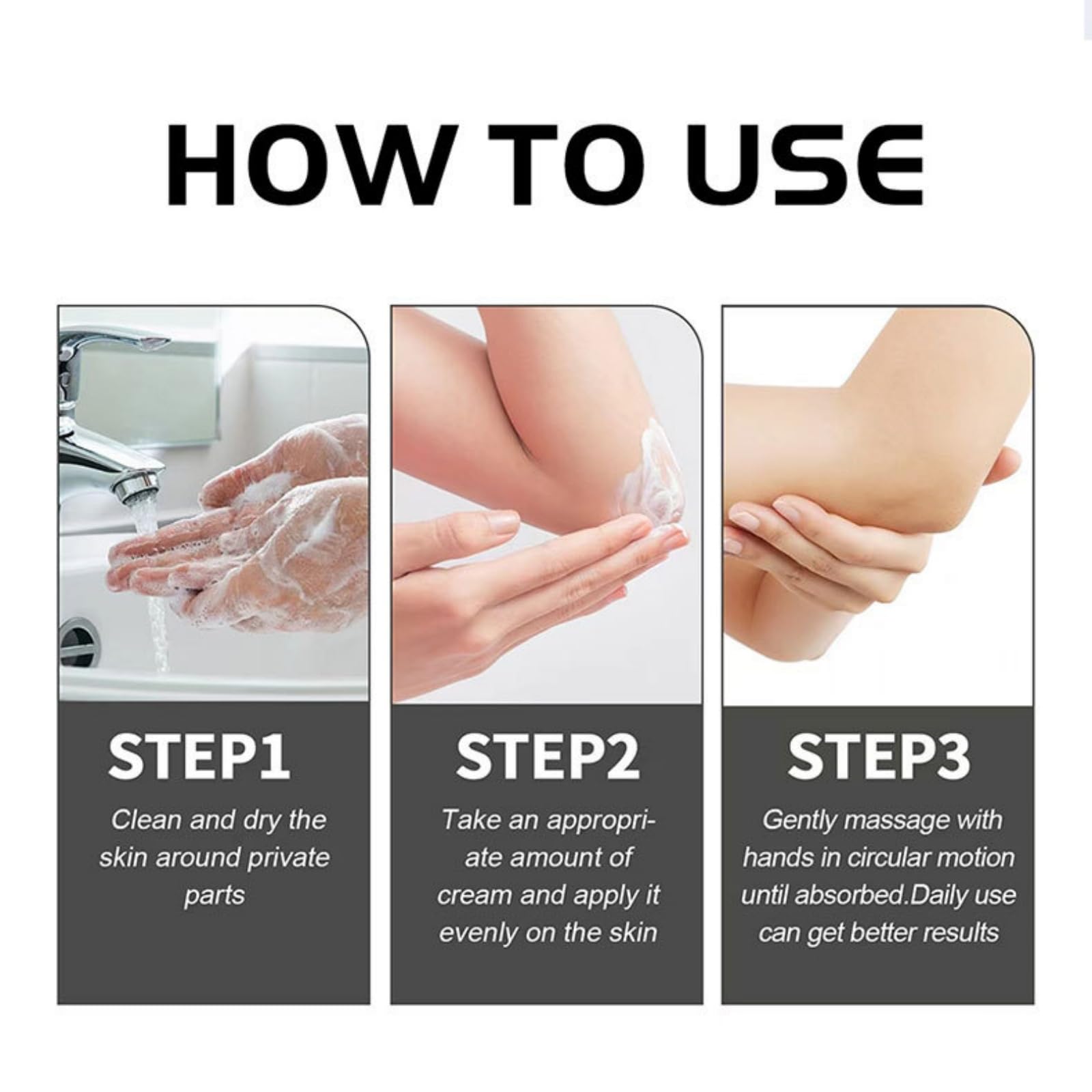 HOW TO USE:1.Cleanse and dry the desired area before using intimate whitening cream .