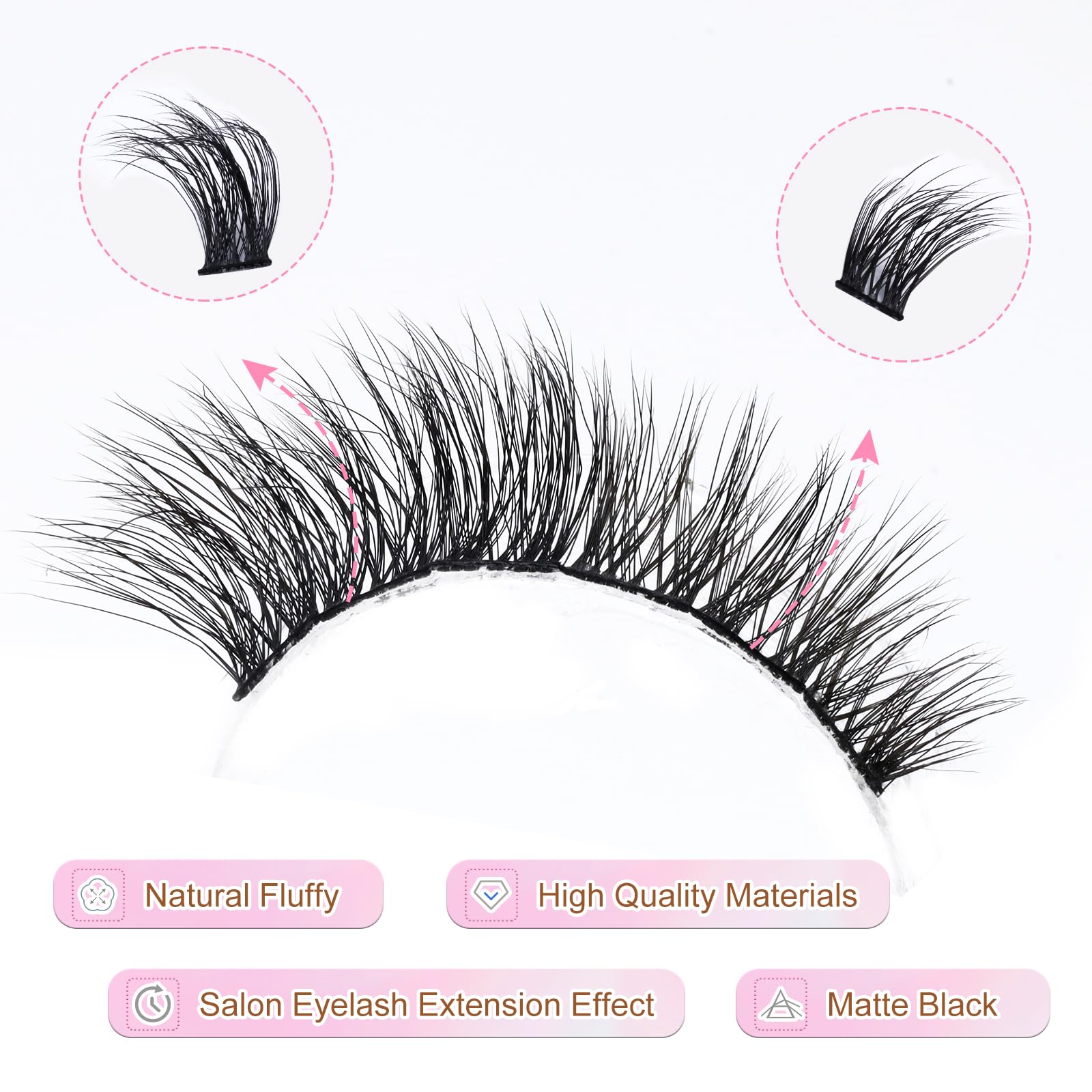 - 2.High Quality Material: Our eyelash clusters are made of cruelty-free synthetic fibers which are lightweight, soft, and comfortable. The ultra-thin, soft band ensures no discomfort after wearing lashes, providing a 24-hour sensation of pure comfort
